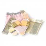 Enjoy this Yellow and black fouta hammam kit consisting of a slipper, toiletry bag and matching fouta for your moments of relaxation in the hammam or sauna.