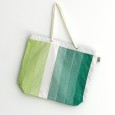 Ce sac de plage fabriqué à partir du tissu de la fouta avec des rayures en vert est un accessoire incontournable pour vos journées dété au bord de la mer.